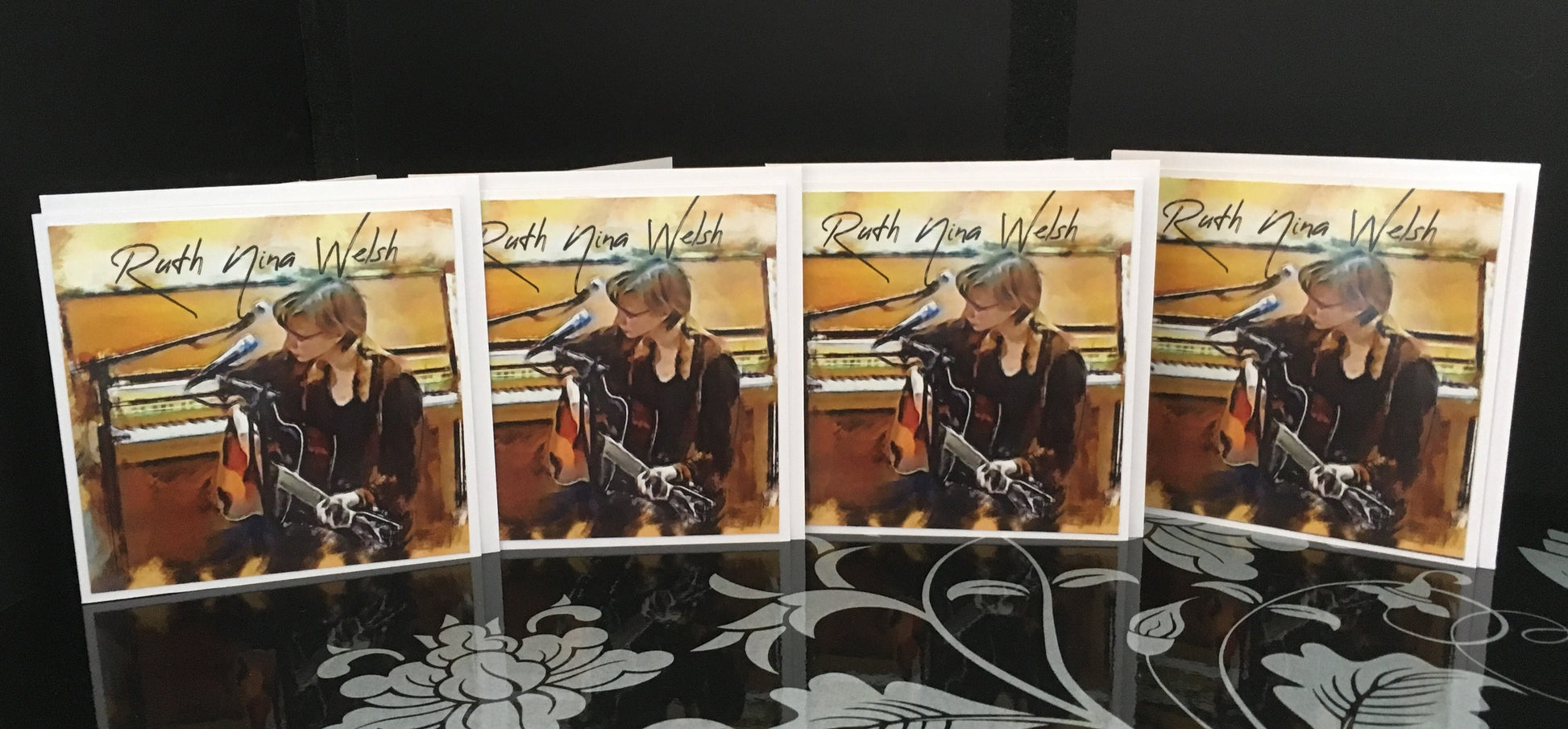 Four 5-inch Square concert prints with white edging which perfectly sets off the picture. This exclusive concert image from 1999 has been beautifully painted by artist Tanya Gordeeva. The cards come with envelopes. This was the first concert artwork release to celebrate Ruth’s career as a singer-songwriter. You will also receive a signed postcard.